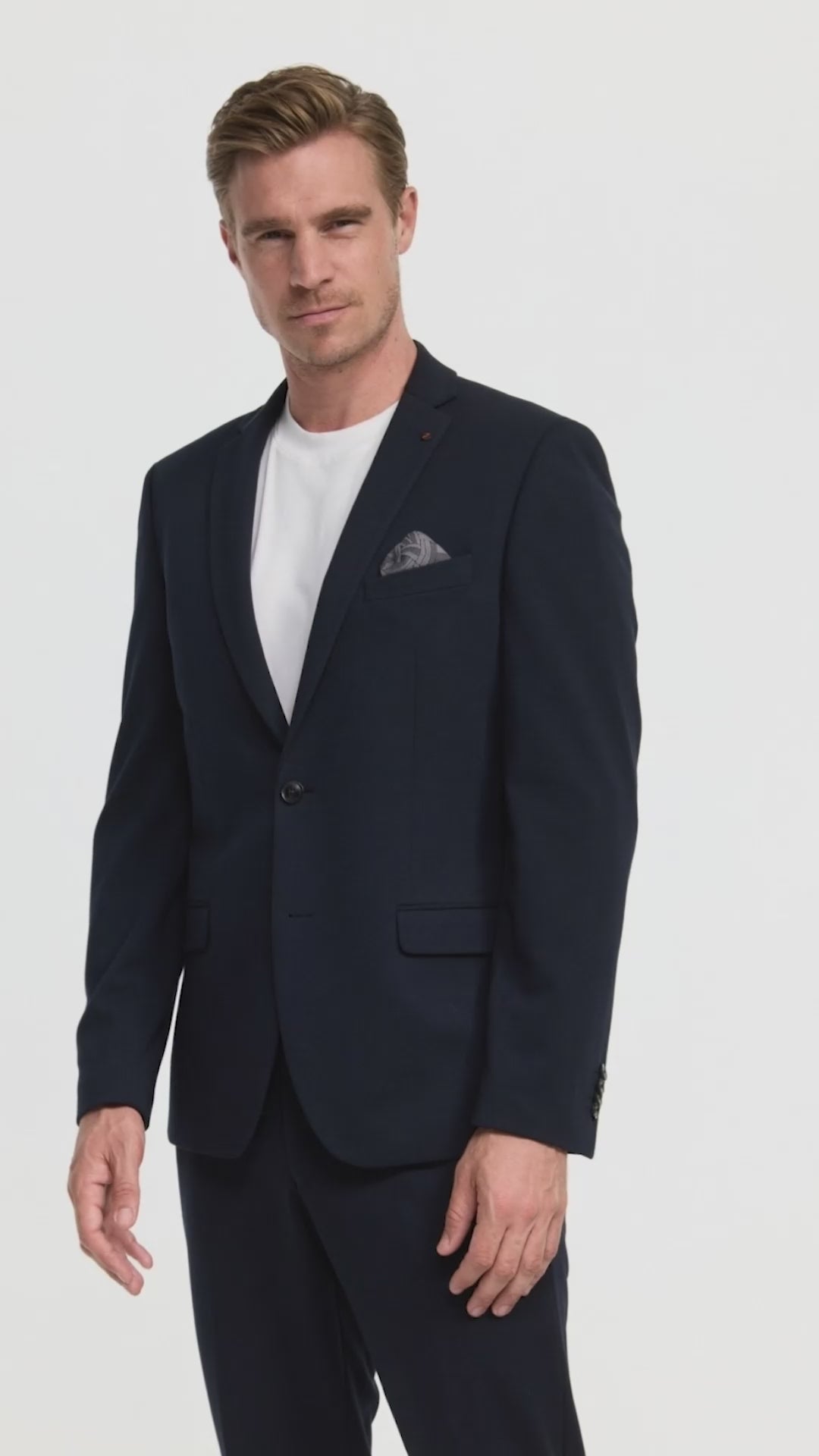 Das bequeme dunkelblaue Jersey Sakko DiNorris ist slim geschnitten. Das Zweiknopf Sakko ist mit zwei aufgesetzten Taschen ausgestattet, einer Brusttasche und zwei Innentaschen. Durch das Teil-Futter ist das Sakko sehr leicht und angenehm zu tragen. Das Futter der Brusttasche lässt sich herausziehen und ersetzt das Einstecktuch. Dieses Sakko ist das optimale Gegenstück zu der Hose DiSailor oder der Jogpants DiSpartakus 202641-690.